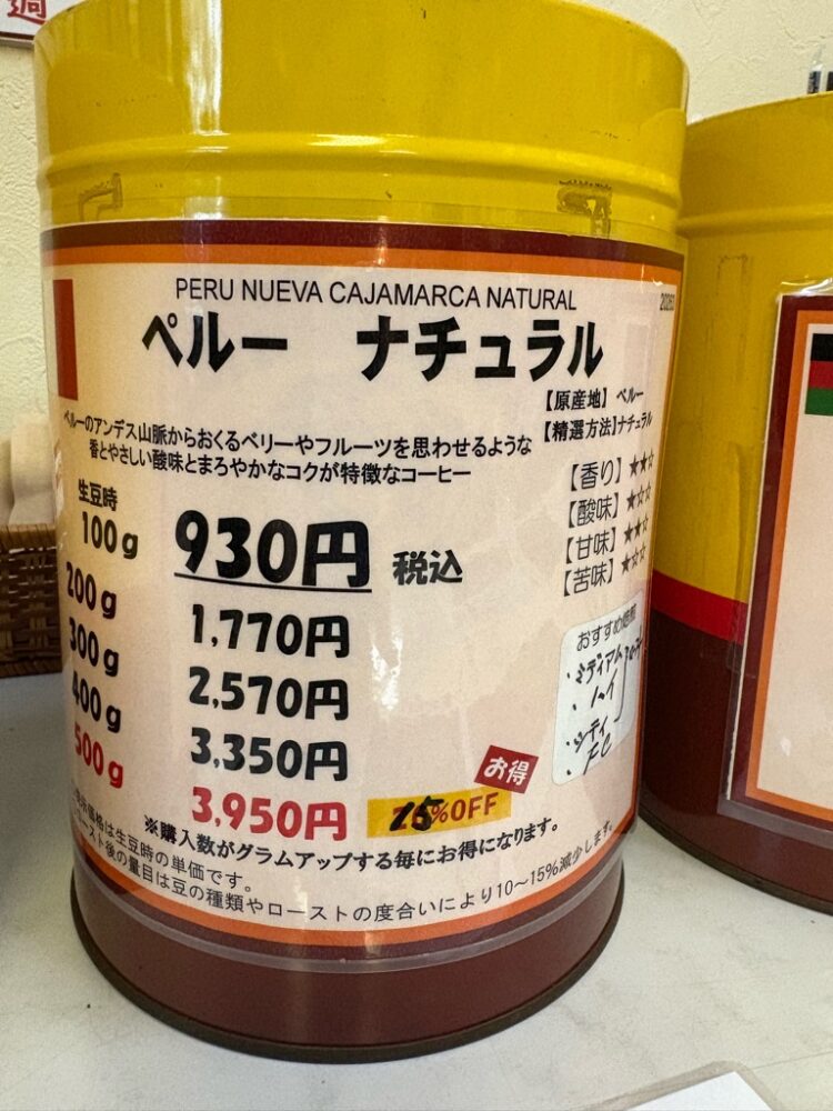 神山産の豆。芳醇な香りと深いコク、柔らかい苦味のバランスの取れた味。